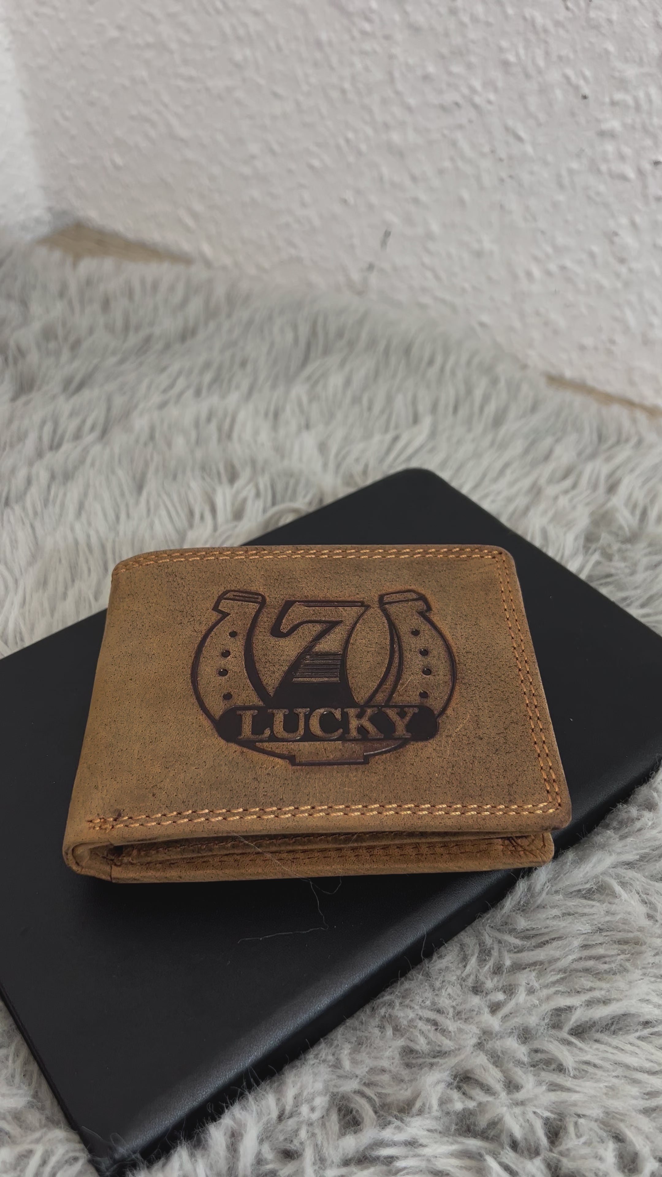 Diese Geldbörse aus echtem Hunter-Leder kombiniert rustikale Eleganz mit Funktionalität. Das auffällige "Lucky 7"-Design mit Hufeisen-Prägung verleiht ihr einen einzigartigen Charme. Perfekt für alle, die Stil und Qualität suchen.
